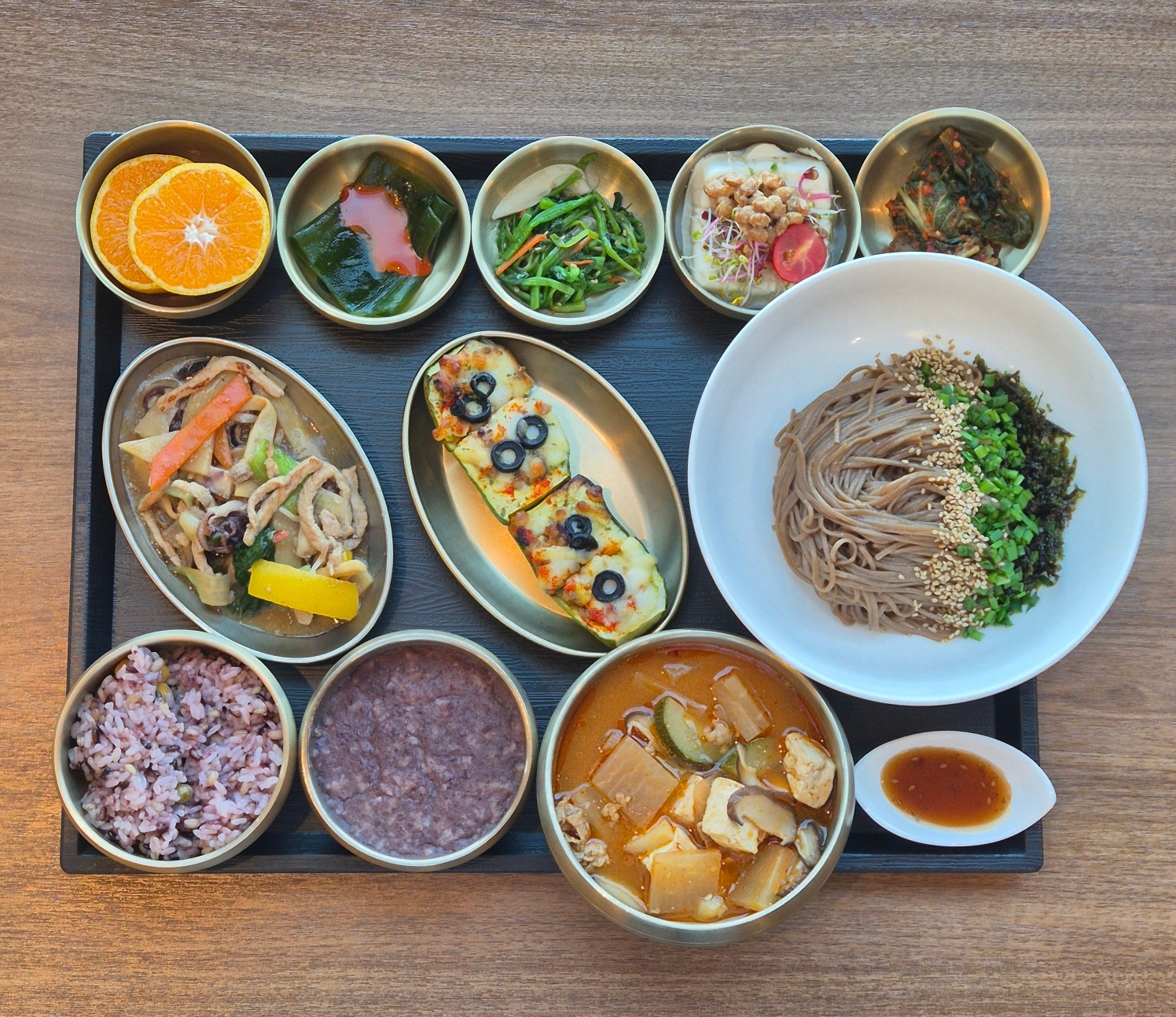 팥죽, 차돌쌈장찌개, 유산슬, 들기름막국수, 애호박보트, 미나리나물, 쌈다시마, 낫또연두부, 과일